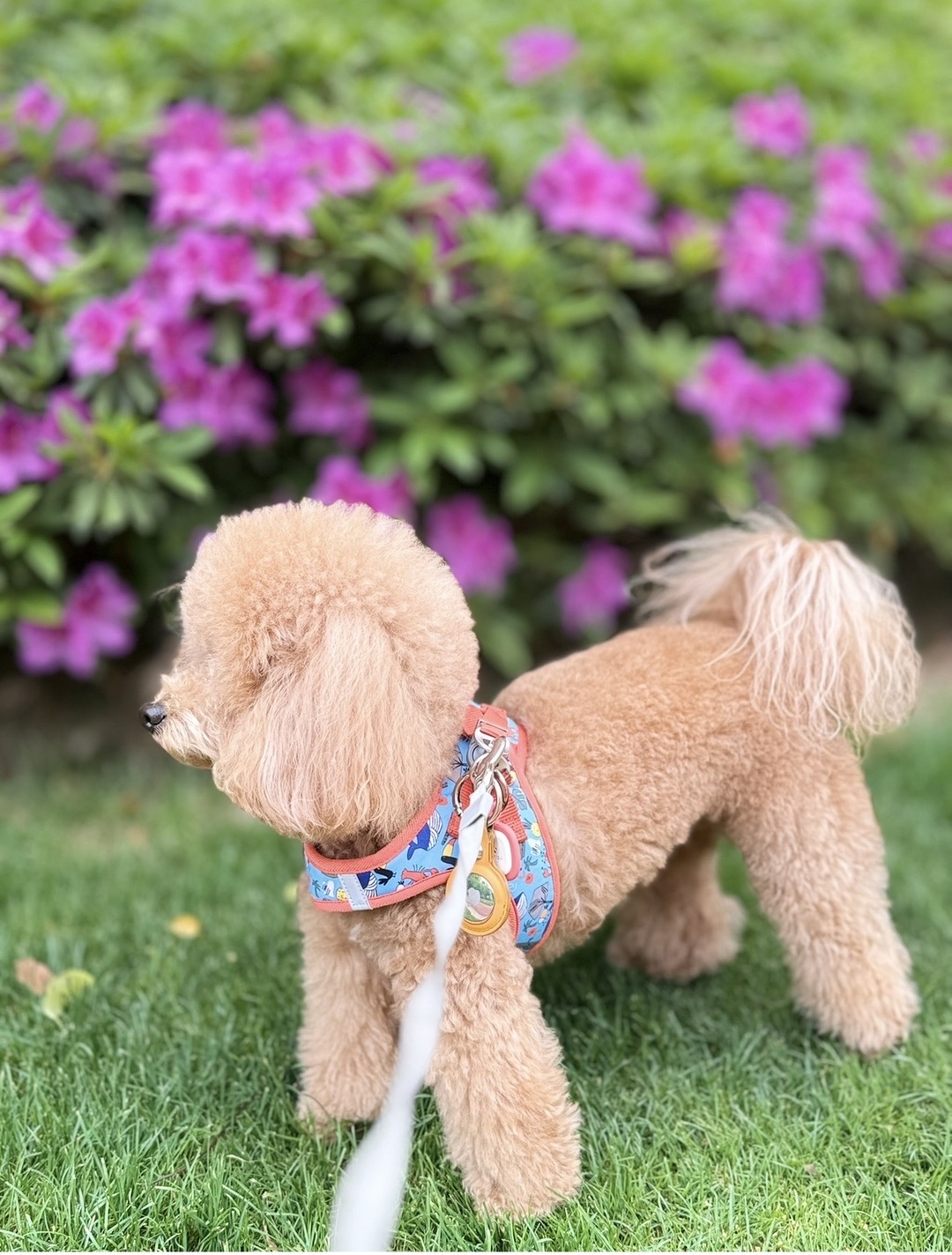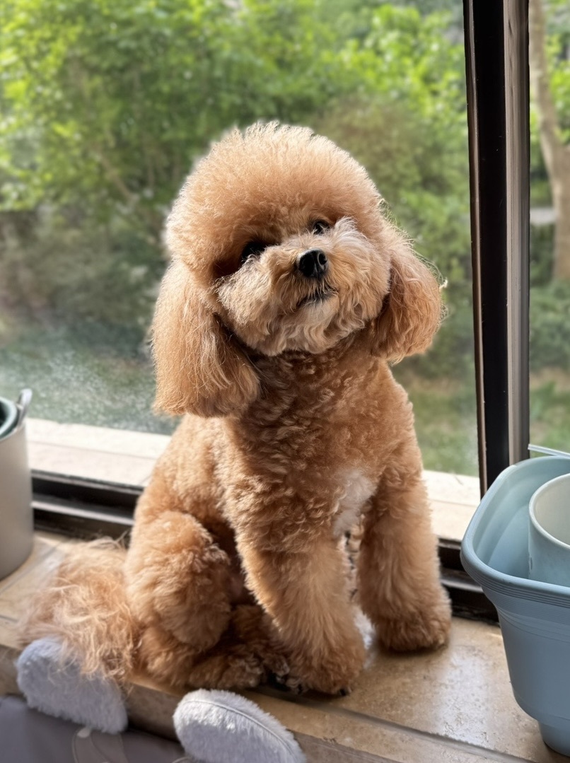 如今4岁的小妮妮,漂亮又可爱,浅棕色的卷毛蓬松柔软,一双黑葡萄似的眼睛总含着温柔的光。她从不大声吠叫,2个月大就会自己上厕所,不拆家但是咬坏过3付眼镜[破涕为笑]会用湿漉漉的鼻子蹭蹭我们的手背,她最喜欢安静地趴在我们的腿上肚子上睡觉。